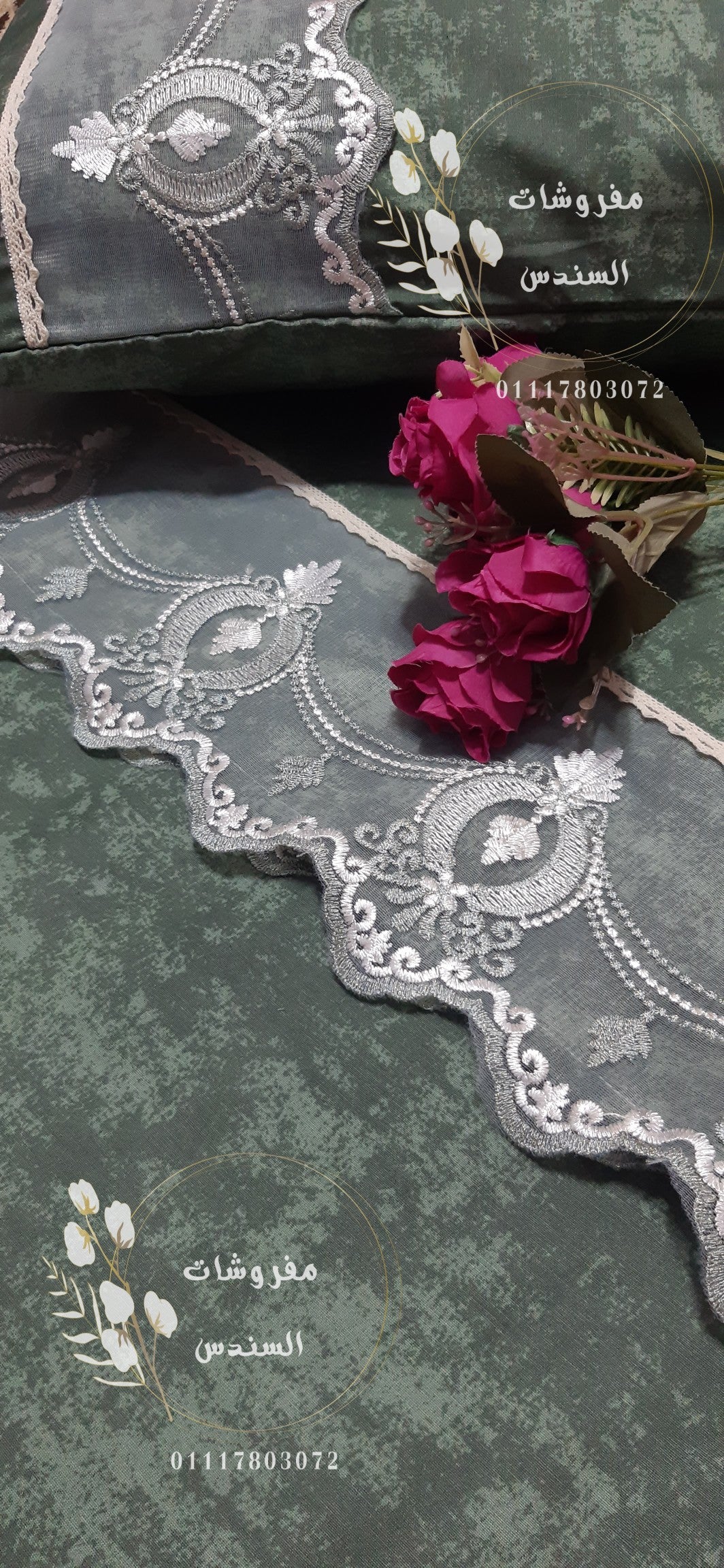 طقم سرير مطرز بجوبير فاخر (أخضر زيتي)