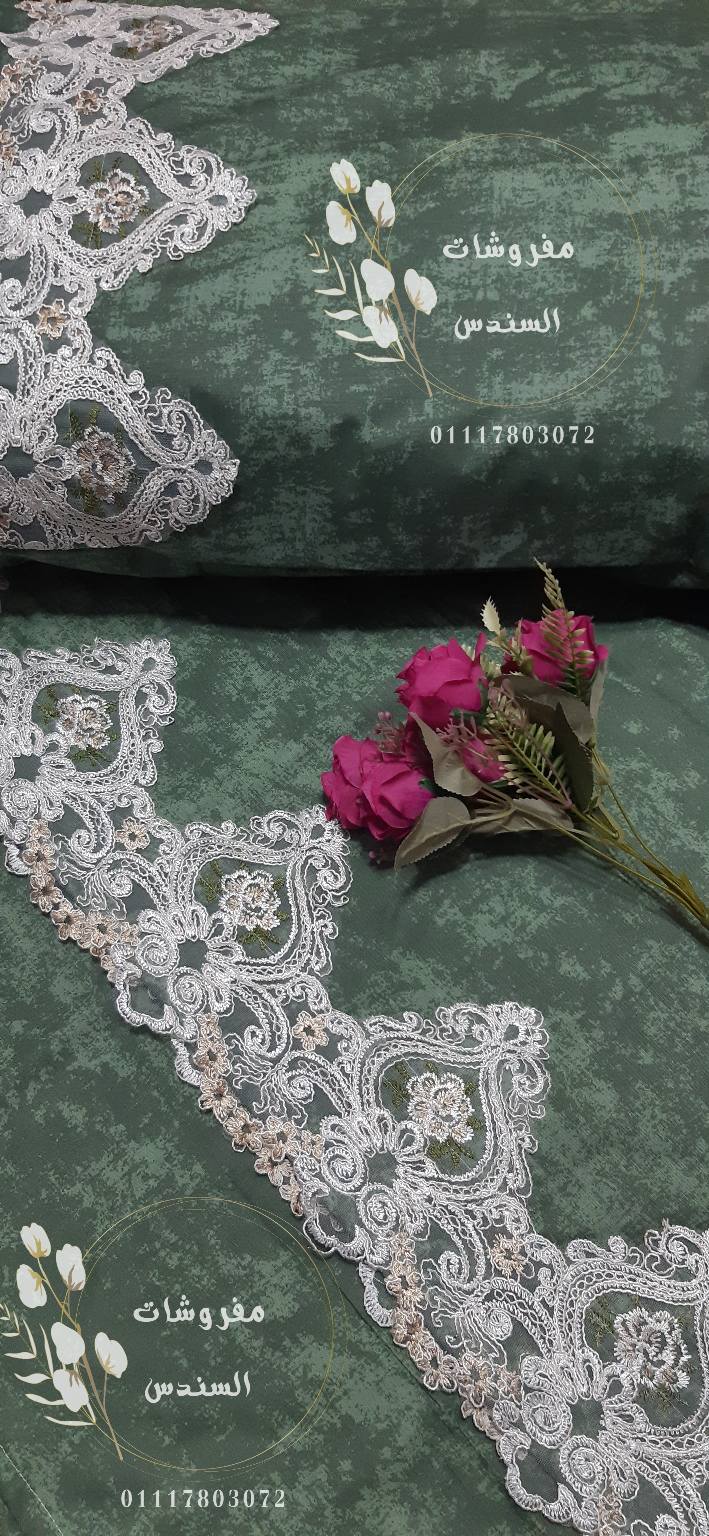 طقم سرير مطرز بجوبير فاخر (أخضر زيتي)