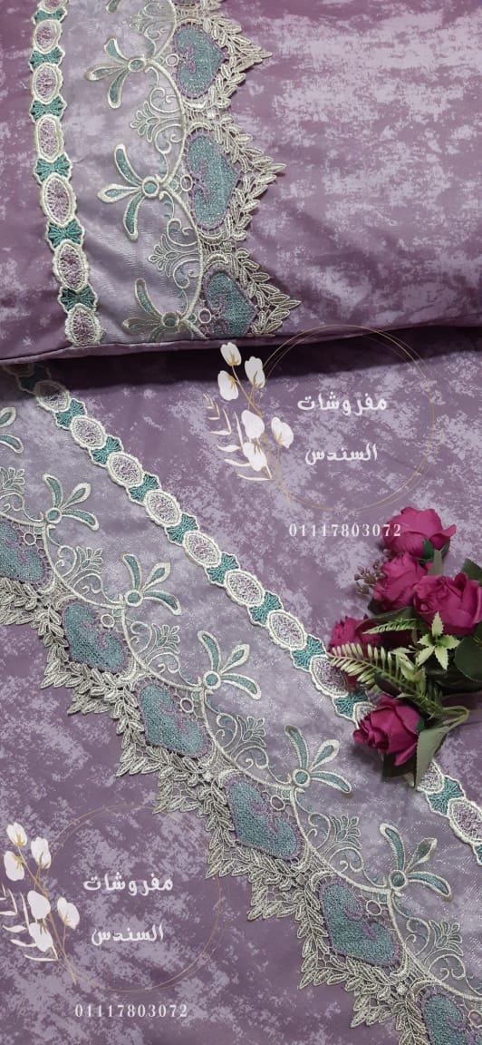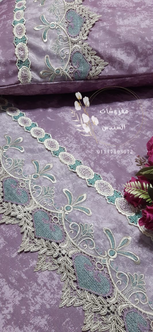 طقم سرير مطرز بجوبير فاخر (موف كشمير)