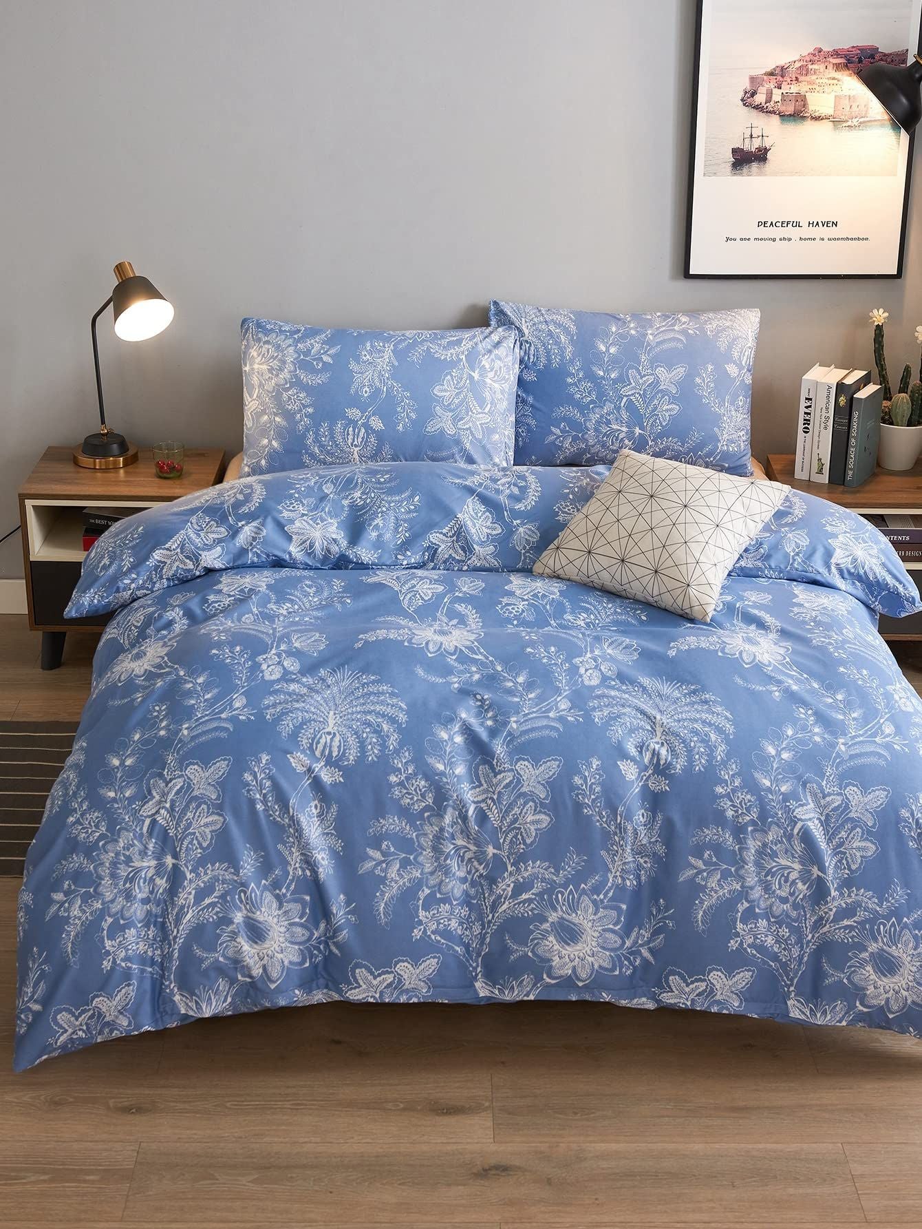 ملاية سرير أنيقة بنقشة زهور باللون اللبني
