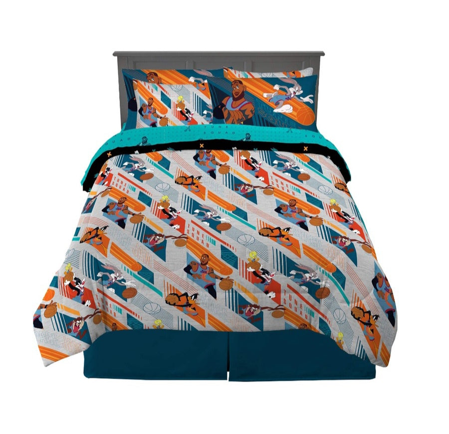 التصميم مليان رسومات لشخصيات لوني تونز مع أجواء كرة السلة