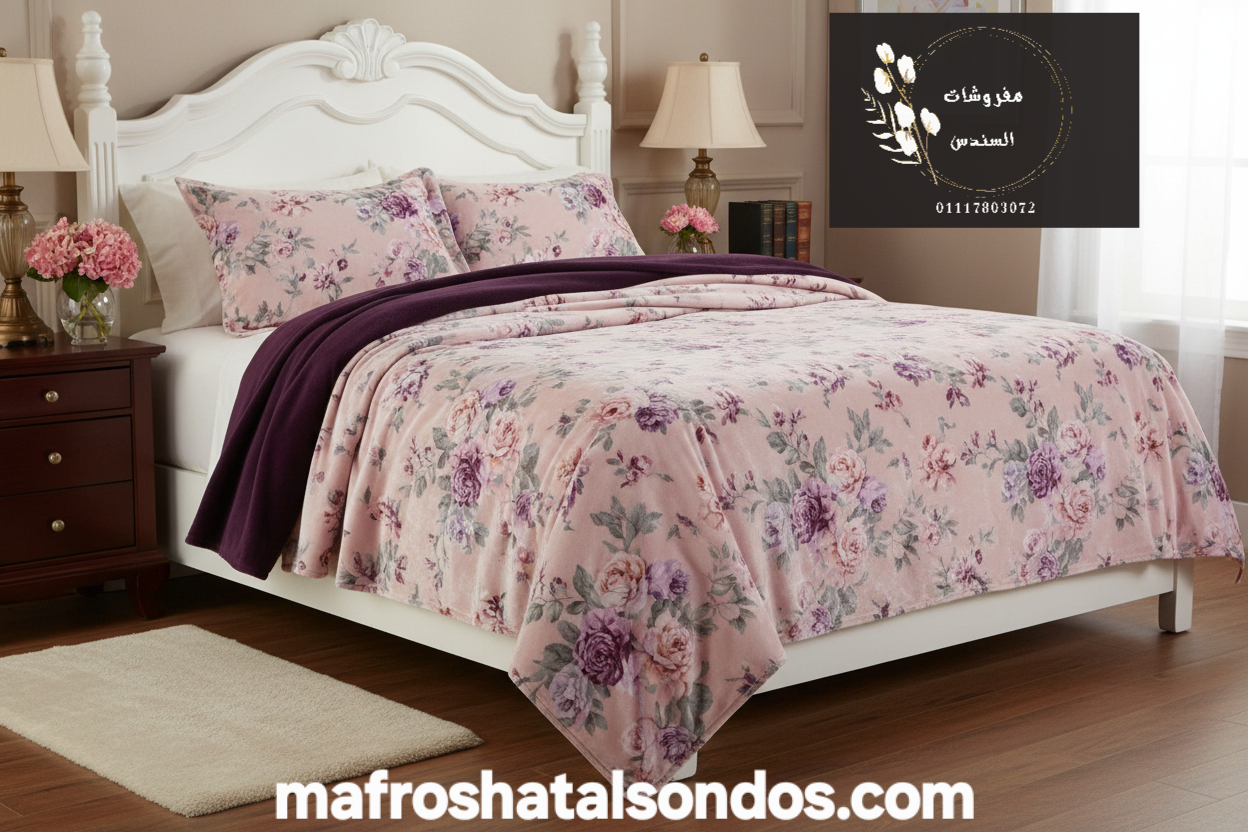 دفاية سرير قطيفة فاخرة بتصميم الورورد الموف والوردية - دفء وأناقة