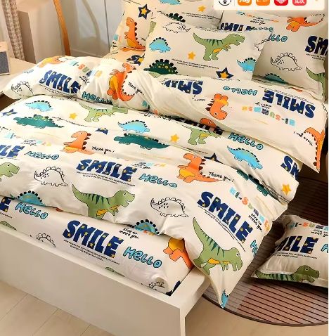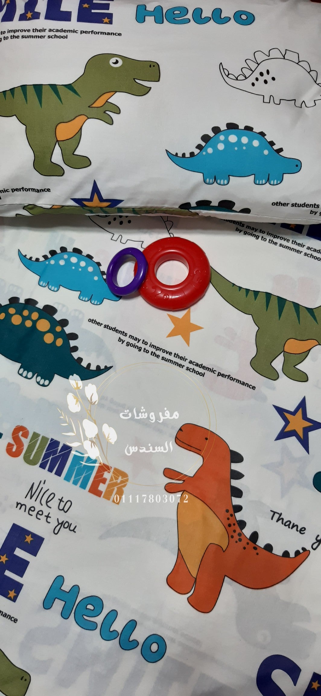 ملاية سرير أطفال برسمة ديناصورات ملونة