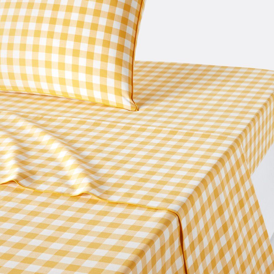 كفر لحاف كارو بنقشة المربعات الكلاسيكية باللون الأصفر المبهج