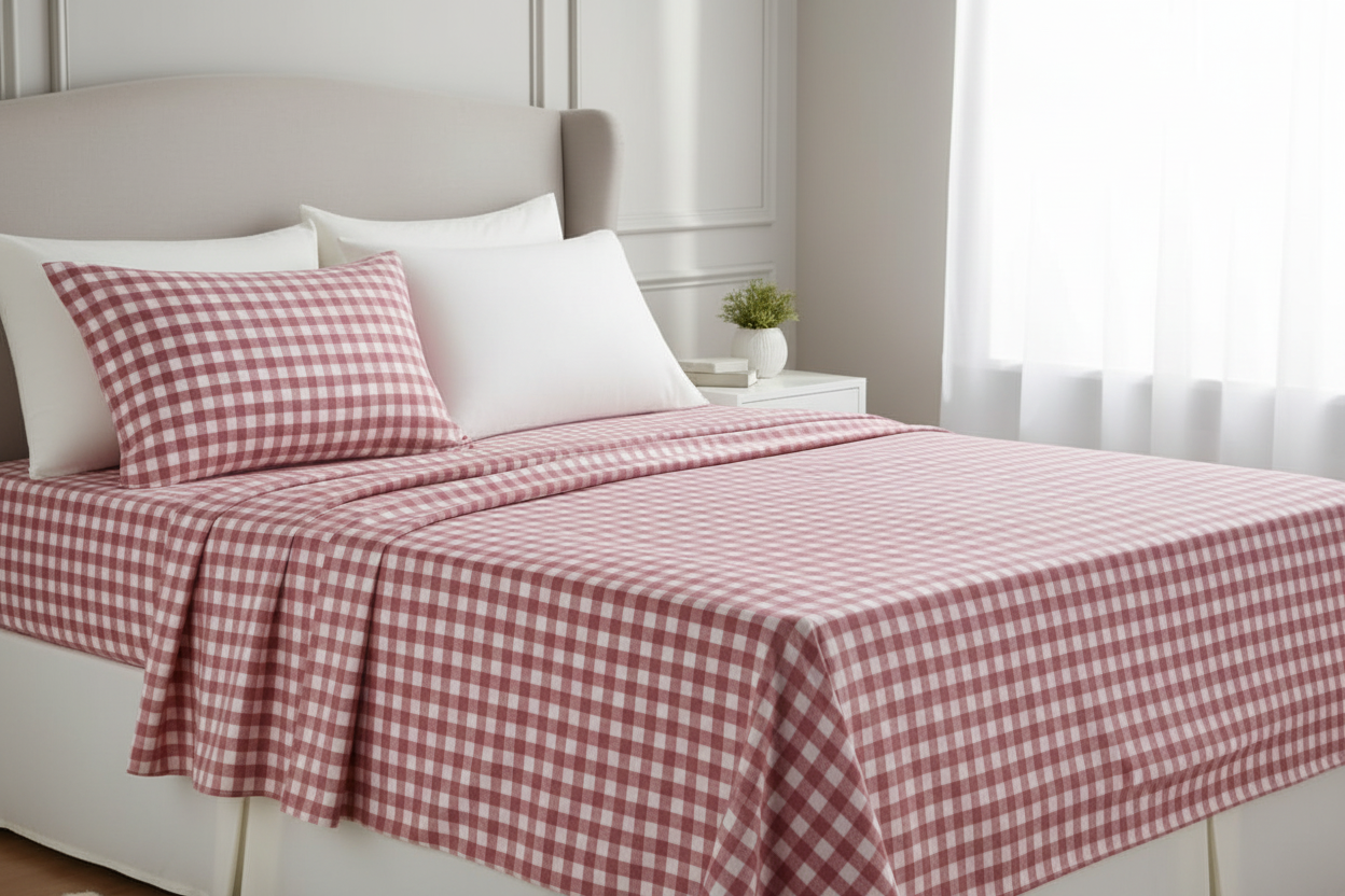 طقم سرير كارو بنقشة المربعات الكلاسيكية باللون الوردي الغامق الفاخر