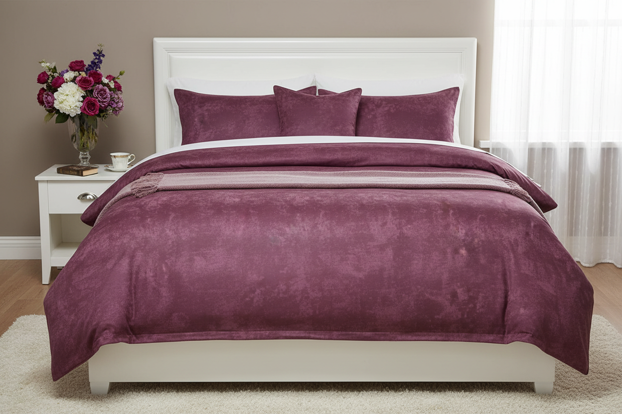 امنح غرفة نومك لمسة من الأناقة والهدوء مع طقم ملاية السرير الرخامي باللون المارون العصري