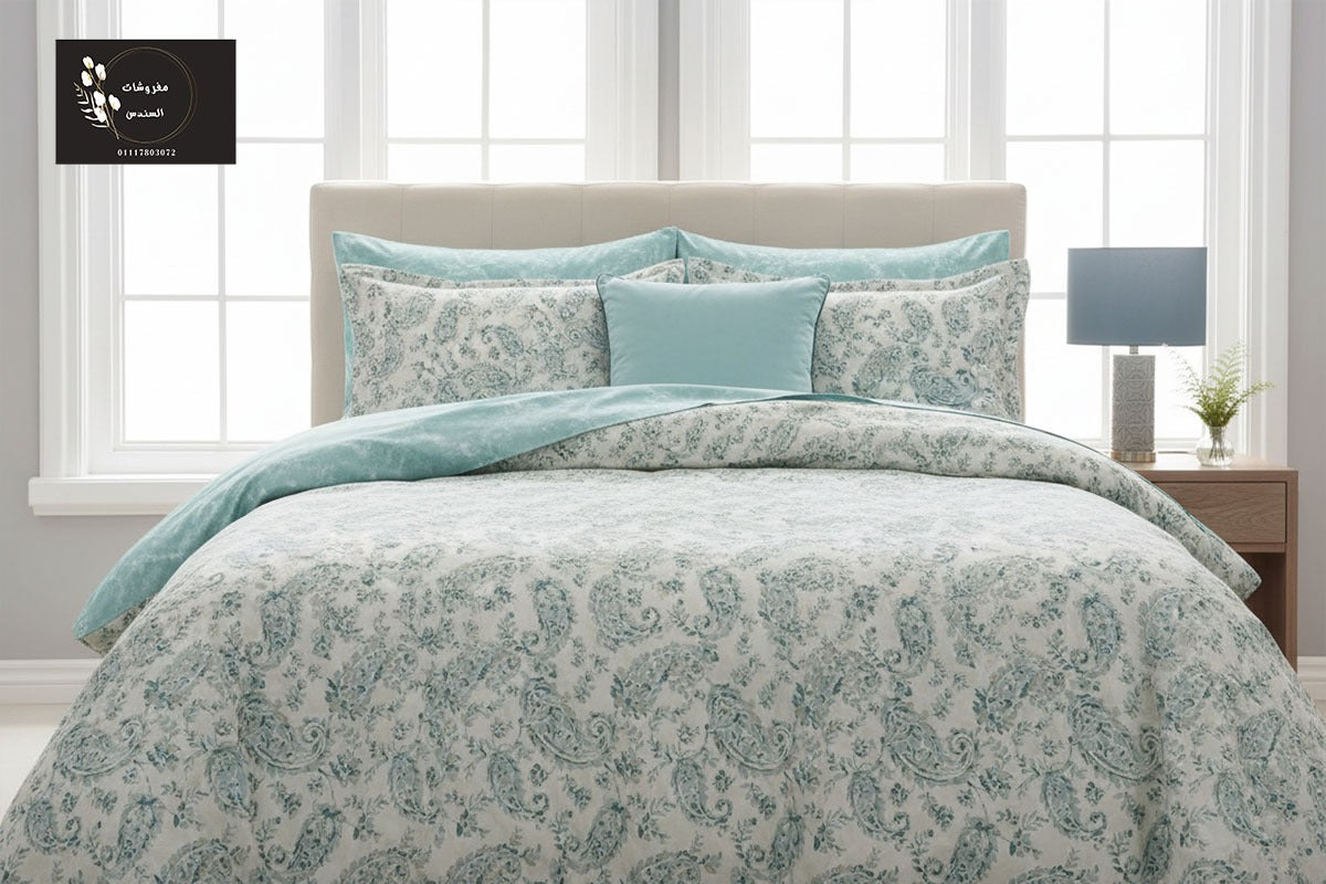 التصميم الكلاسيكي الفاخر يضيف لمسة من الأناقة والرقي لغرفة نومك. مثالي لمن يبحث عن ديكور راقٍ يجمع بين الفخامة الكلاسيكية والعصرية، مع خامة قطنية ناعمة تضمن لك نوماً مريحاً.